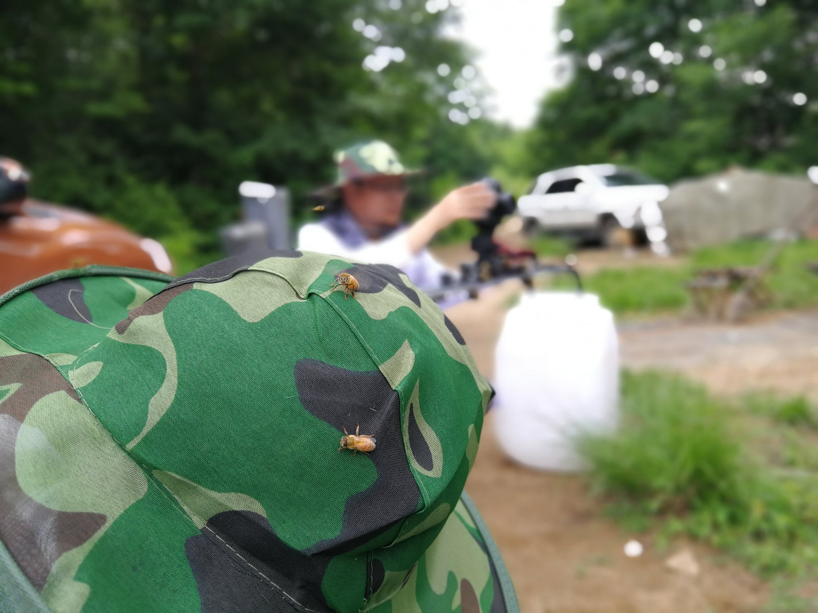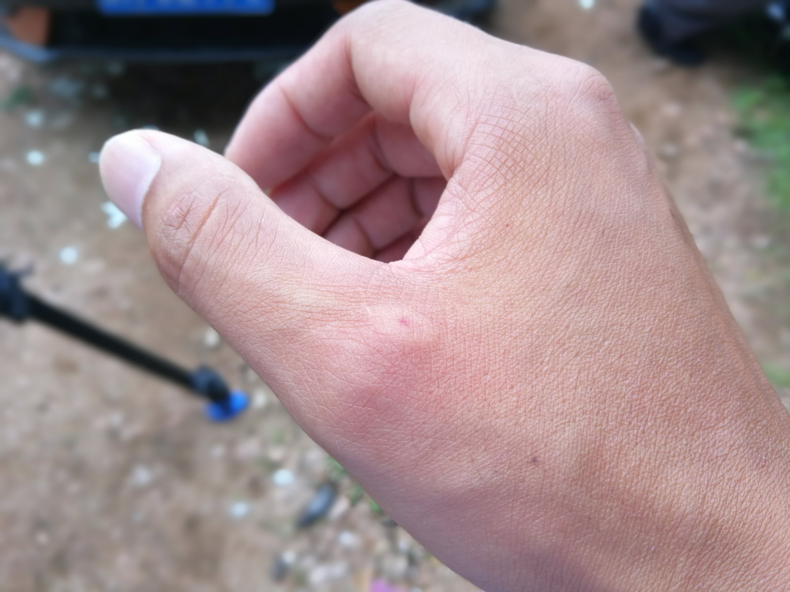 摄像师被蜜蜂“亲”过的手。
