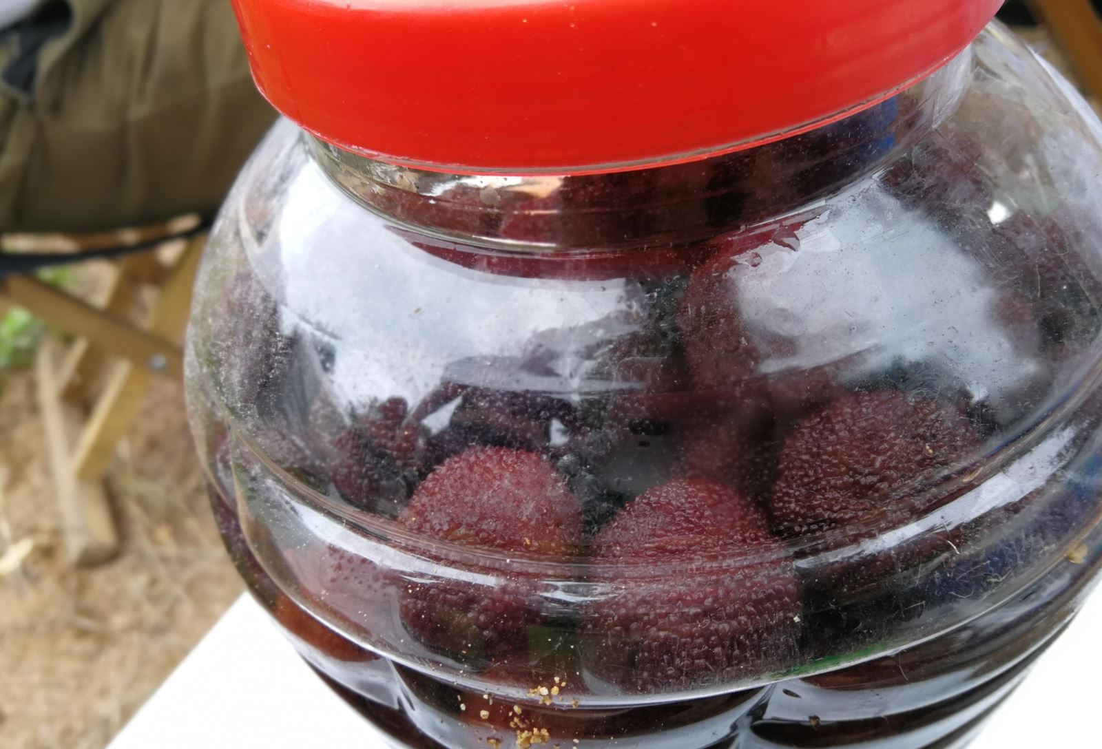 品尝养蜂人自酿的杨梅酒。